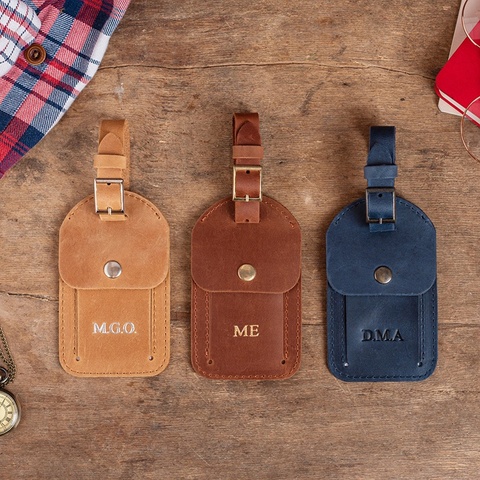 सामान कस्टम वास्तविक चमड़े के सामान टैग के लिए व्यक्तिगत यात्रा टैग नाम टैग